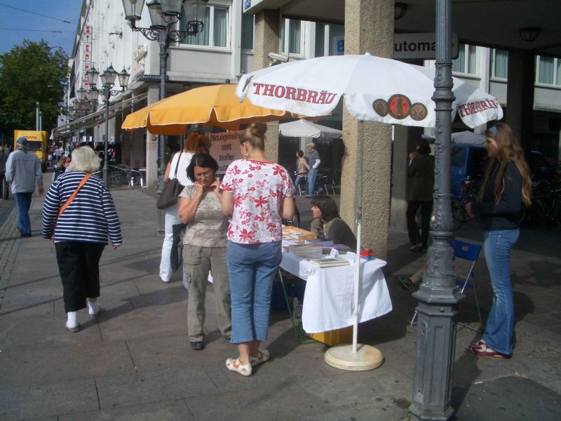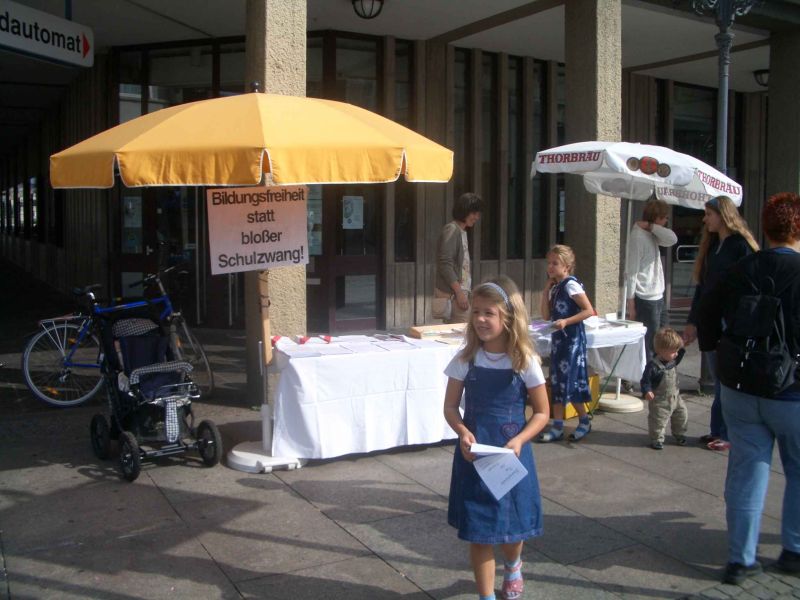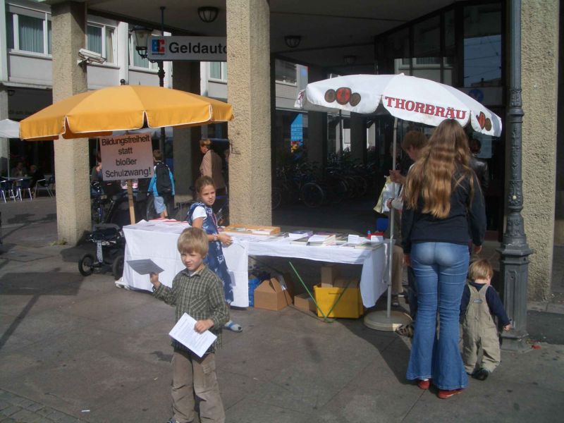 Eindrücke und Impressionen vom Internationalen Tag für BildungsfreiheitMitarbeiter und Freunde des Netzwerks Bildungsfreiheit am Informationsstand in Karlsruhe