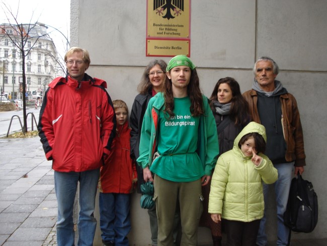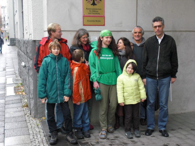 Einige Teilnehmer der Tagung “Konkrete Wege zur Bildungsfreiheit” die am Vortag in Berlin stattgefunden hatte, machte sich auf den Weg zum Bildungsministerium, um die fast 800 Unterschriften und den offenen Brief persönlich zu überreichen